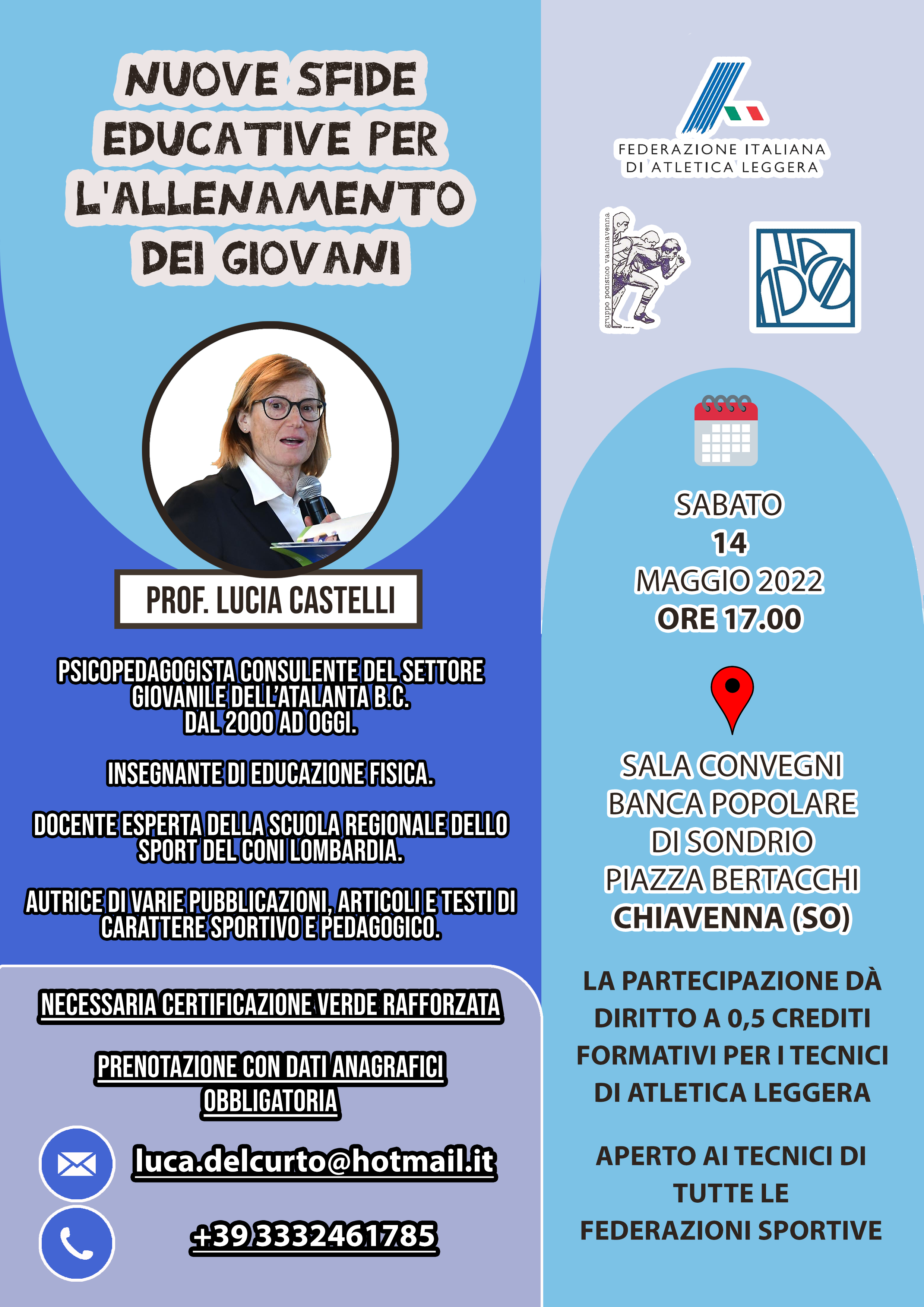 La partecipazione dà diritto a 0,5 crediti formativi per i tecnici di atletica leggera